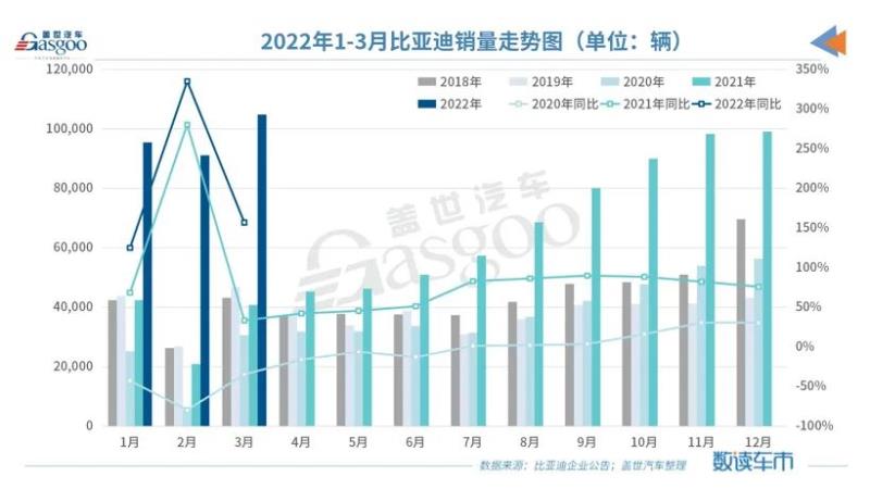 今年3月,比亞迪宣布停產(chǎn)燃油車并全面投入新能源汽車。事實上,該月比亞迪燃油車銷量已經(jīng)為零,而新能源汽車銷量達到104,878輛,同比增長157%,環(huán)比提升15%。這也是比亞迪動力電池裝機量能夠穩(wěn)居第二的主要原因。
