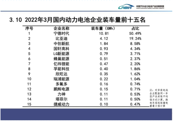 3月國內(nèi)動力電池企業(yè)裝車量TOP15;