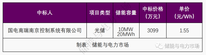 國電南瑞南京控制系統(tǒng)有限公司以總報價3099萬元,成為中標人,該套儲能系統(tǒng)容量為10MW/20MWh,折合電價1.55元/Wh。
