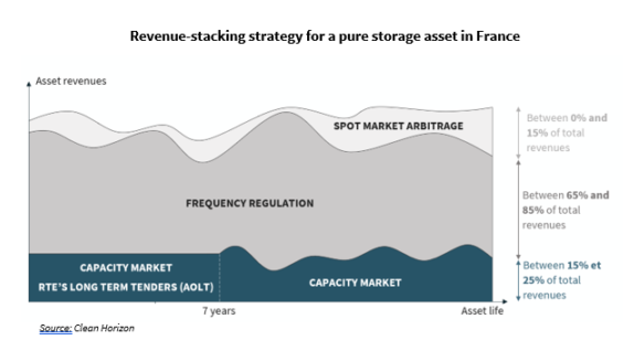 對(duì)于原有能源基礎(chǔ)設(shè)施資產(chǎn)類別而言,這些新市場(chǎng)仍然非常不穩(wěn)定且難以解讀。與通過購電協(xié)議(通常以預(yù)先商定的固定價(jià)格)獲得報(bào)酬的可再生電力項(xiàng)目不同,法國的儲(chǔ)能系統(tǒng)面臨重大市場(chǎng)風(fēng)險(xiǎn):靈活性服務(wù)的定價(jià)系統(tǒng)源于供需平衡的基本原理。無論是通過現(xiàn)貨市場(chǎng)運(yùn)營,還是通過參與定期招標(biāo),這些資產(chǎn)的不同營業(yè)額來源本質(zhì)上是不穩(wěn)定的,從長遠(yuǎn)來看難以預(yù)測(cè)。