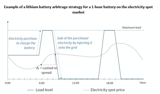 在法國,這些靈活性資源的開發(fā)得到了開放新市場(chǎng)的支持,以獲得更多的收入。而對(duì)電價(jià)預(yù)測(cè)表明,鋰離子電池儲(chǔ)能系統(tǒng)不太可能僅基于現(xiàn)貨市場(chǎng)上的買賣套利策略獲利。在這樣的策略中,儲(chǔ)能系統(tǒng)在電價(jià)低時(shí)購買和儲(chǔ)存電力,然后在電價(jià)上漲時(shí)將其出售并注入電網(wǎng),例如峰值電力需求期間。