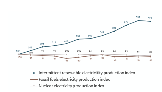 間歇性可再生能源不可避免地滲透到歐洲電力結(jié)構(gòu)中,對(duì)電網(wǎng)的穩(wěn)定性構(gòu)成了越來越大的挑戰(zhàn)。而在歐洲,可再生能源的發(fā)展速度遠(yuǎn)快于電力消費(fèi)的增長。而在法國,可再生能源自從2005年至2010年以來一直沒有太大增長??稍偕茉吹某霈F(xiàn)比傳統(tǒng)的可控電源要晚(例如天然氣、石油和煤炭被稱為“可控電源”,核電也是可控的,但由于慣性強(qiáng)而需要更長的時(shí)間):