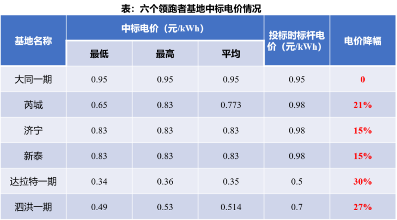 中標(biāo)電價大幅低于當(dāng)時的標(biāo)桿電價。