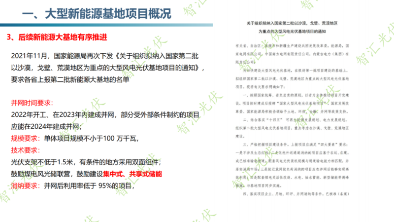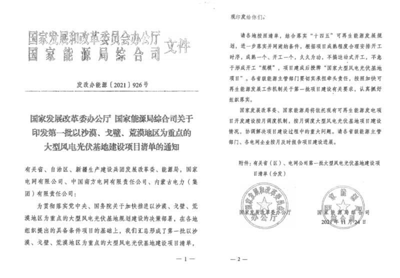 2021年11月24日,《第一批以沙漠、戈壁、荒漠為重點的大型風(fēng)電光伏基地建設(shè)項目清單》下發(fā)。
