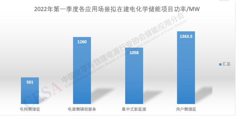 進一步而言,2022年第一季度電化學儲能項目裝機情況如下: