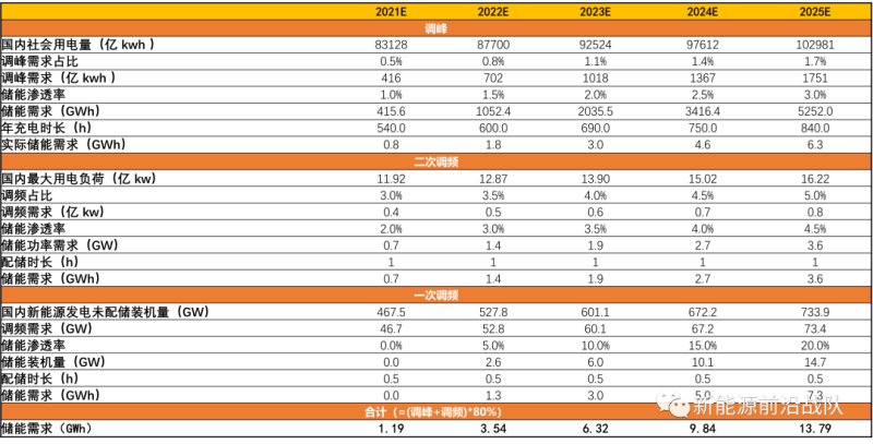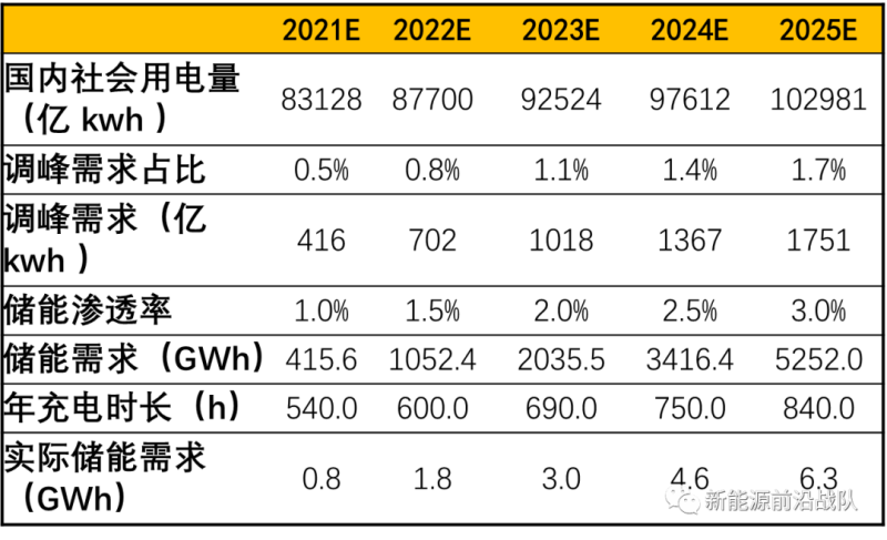 調(diào)峰需求測算:預(yù)計25年需求達(dá)6.3GWh,21-25年CAGR+69%