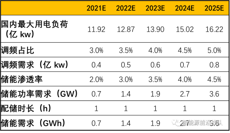 一次調(diào)頻需求測算:預(yù)計25年需求達(dá)7.3GWh,有望成為電網(wǎng)側(cè)儲能裝機(jī)量最大增量