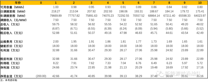 調(diào)頻經(jīng)濟(jì)性:以7.5元/MW補(bǔ)償標(biāo)準(zhǔn)計算,全生命周期IRR=14.91%