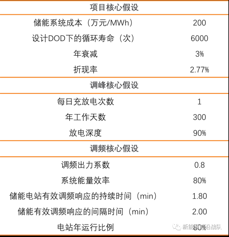 表:獨(dú)立儲能同時參與調(diào)峰+調(diào)頻的核心假設(shè)