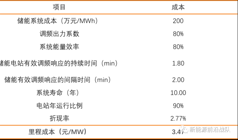 表:獨(dú)立儲能參與調(diào)頻的度電成本測算