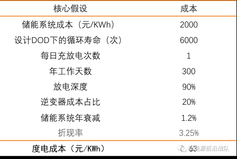 表:獨(dú)立儲能參與調(diào)峰的度電成本測算