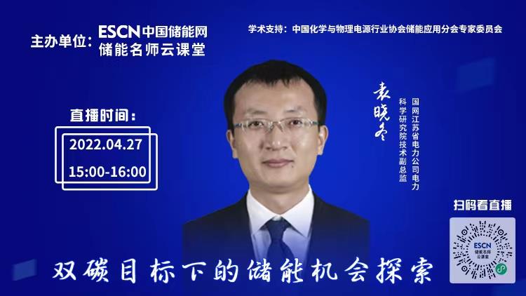 4月27日下午15:00-16:00,中國儲(chǔ)能網(wǎng)非常榮幸地邀請(qǐng)到國網(wǎng)江蘇省電力公司電力科學(xué)研究院技術(shù)副總監(jiān)袁曉冬做客“ESCN儲(chǔ)能名師云課堂”(在線直播),為大家分享《“雙碳”目標(biāo)下的儲(chǔ)能機(jī)會(huì)探索》主題報(bào)告。歡迎業(yè)界同仁在線學(xué)習(xí)與交流。