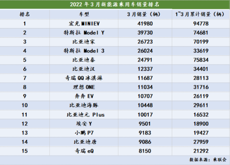 分品牌看,3月國(guó)內(nèi)新能源乘用車(chē)市場(chǎng)“多點(diǎn)開(kāi)花”,共有13家企業(yè)批發(fā)銷(xiāo)量破萬(wàn)輛。其中,比亞迪以10.43萬(wàn)輛的成績(jī)蟬聯(lián)榜首之位;特斯拉中國(guó)則憑借6.58萬(wàn)輛的批發(fā)銷(xiāo)量位列第二;第三名上汽通用五菱的銷(xiāo)量為5.12萬(wàn)輛,較上月大幅提高近1倍;奇瑞汽車(chē)、廣汽埃安、長(zhǎng)安汽車(chē)、小鵬汽車(chē)、長(zhǎng)城汽車(chē)、吉利汽車(chē)、哪吒汽車(chē)、理想汽車(chē)、上汽乘用車(chē)、零跑汽車(chē)分列四至十三位。
