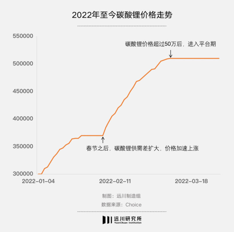 中國儲(chǔ)能網(wǎng)訊:碳酸鋰是一種白色粉末,也是生產(chǎn)電池所需的糧食,2022年,糧食短缺,糧價(jià)一飛沖天。