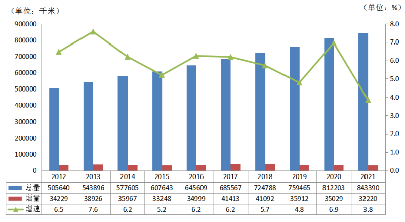圖16 2012~2021年220千伏及以上輸電線路回路長度情況