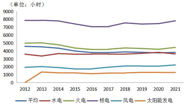 圖14 2012~2021年不同電源發(fā)電設備利用小時變動情況