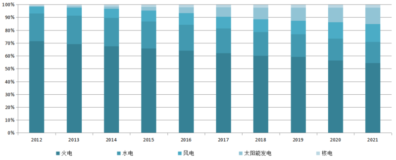 從裝機增速看,2021年,風電和太陽能發(fā)電裝機以超過15%的速度大幅增長,太陽能發(fā)電同比增長20.9%,風電同比增長16.6%。核電同比增長6.8%。水電同比增長5.6%?;痣娡仍鲩L4.1%,其中,煤電同比增長2.8%,占總發(fā)電裝機容量的比重同比下降2.3個百分點。