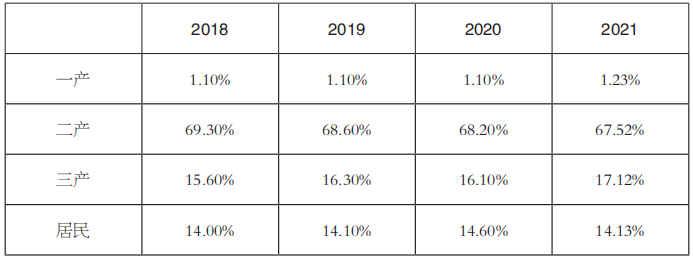 表1 2012~2021年分產(chǎn)業(yè)用電量(單位:億千瓦時)