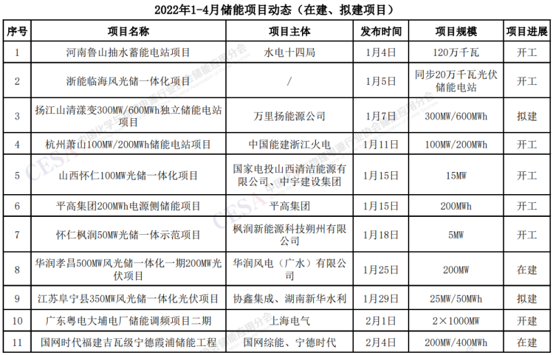 中國儲能網(wǎng)訊:據(jù)中國化學(xué)與物理電源行業(yè)協(xié)會儲能應(yīng)用分會產(chǎn)業(yè)政策研究中心不完全統(tǒng)計(jì),2022年1-4月,儲能擬、在建項(xiàng)目達(dá)到31個(gè)。其中光伏配儲項(xiàng)目13個(gè),獨(dú)立儲能電站項(xiàng)目10個(gè),其它分別為抽水蓄能、火電調(diào)頻、氫儲能、熔鹽儲能項(xiàng)目等。