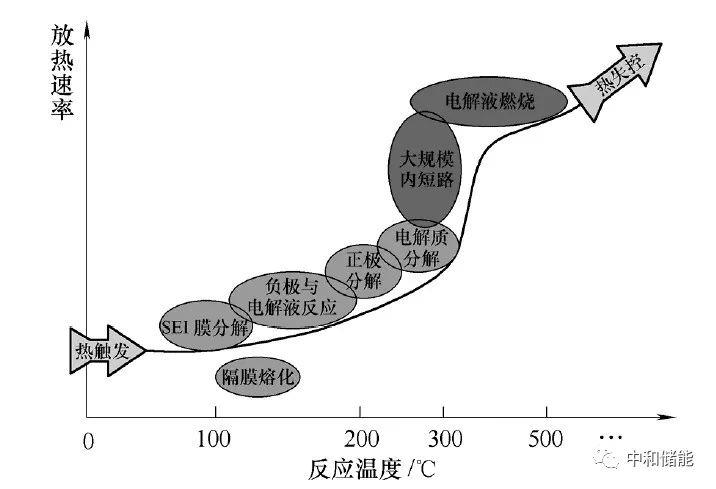 鋰離子電池作為新能源動(dòng)力電池的代表已經(jīng)掀起了動(dòng)力電池汽車發(fā)展浪潮的新革命,因此更多的人也在思考其在儲(chǔ)能上的應(yīng)用潛力與可能性。目前,隨著鋰離子電池技術(shù)的不斷發(fā)展,鋰離子電池在儲(chǔ)能上的發(fā)展十分迅速,其應(yīng)用也已經(jīng)步入商業(yè)化運(yùn)行階段,但伴隨著鋰離子電池燃爆事故的層出不窮,人們對(duì)其安全性的憂慮始終是其大規(guī)模應(yīng)用與快速發(fā)展的一大門檻與阻礙。在之前的文章中,已經(jīng)從反應(yīng)機(jī)理上剖析了鋰離子電池內(nèi)部具有很強(qiáng)的燃爆條件,其內(nèi)部的易燃性材料如低熔點(diǎn)可燃有機(jī)脂類化合物、石墨負(fù)極材料都會(huì)成為相應(yīng)的“燃料”,在充放電以及運(yùn)行過程中不當(dāng)?shù)臒峁芾韺⒊蔀殇囯姵匕踩鹿实淖罱K導(dǎo)火索,引發(fā)燃爆事故,下圖對(duì)熱失控的引發(fā)過程做了形象的展示。