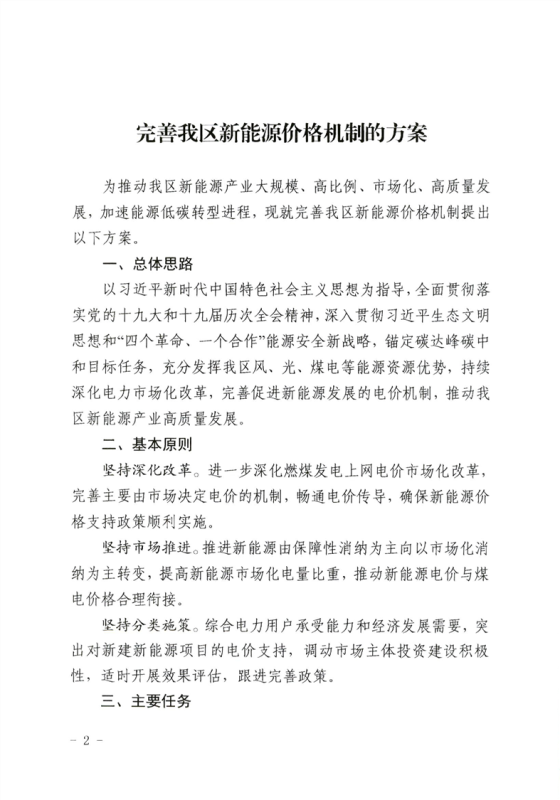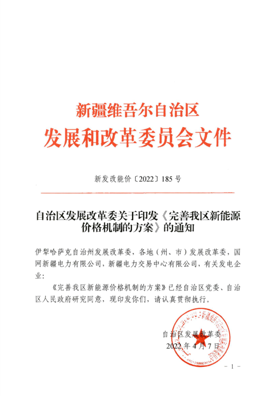 新疆自治區(qū)發(fā)改委印發(fā)《完善我區(qū)新能源價格機制的方案》