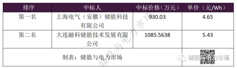 中國儲能網(wǎng)訊:4月24日,國家電投海陽儲能電站1MW/2MWh 全釩液流電池系統(tǒng)設備采購進行了候選人公示,上海電氣(安徽)儲能科技有限公司以930.03萬元報價(折合單價4.65元/Wh)成為第一中標候選人。大連融科儲能技術發(fā)展有限公司以1085.5638萬元報價(折合單價5.43元/Wh)位列第二。