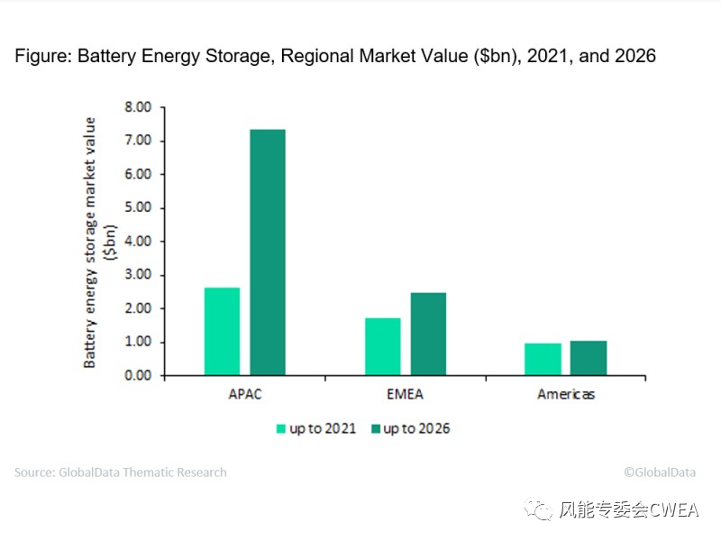 GlobalData 的報(bào)告發(fā)現(xiàn),預(yù)計(jì)全球市場在預(yù)測期內(nèi)都將大幅增長,其中亞太地區(qū)市場將領(lǐng)先。預(yù)計(jì) 2026 年亞太市場將達(dá)到 73.3 億美元;占全球市值的近68%。亞太地區(qū)中,中國、日本、印度、韓國和澳大利亞等國家將推動(dòng)該地區(qū)市場的領(lǐng)先。更多的投資將增加可再生能源的滲透率、提高系統(tǒng)的靈活性和彈性,并在各自的國家電網(wǎng)中提供輔助服務(wù)。另外,電網(wǎng)改造、提高電氣化率以及為快速增長的人口提供電力等因素,也將為儲(chǔ)能創(chuàng)造更多市場機(jī)會(huì)。