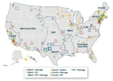 圖1到2020年美國(guó)現(xiàn)有混合部署項(xiàng)目的位置
