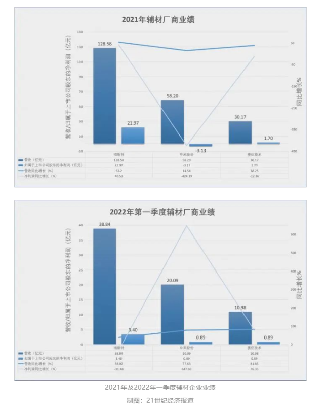 此外,2021年,其他輔材環(huán)節(jié),如背板、膠膜均遭受不同程度的成本壓力,因而三家輔材公司業(yè)績(jī)表現(xiàn)不一。