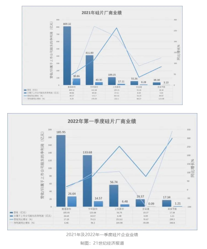 而部分新晉者在年內(nèi)便實(shí)現(xiàn)了利潤(rùn)放量。京運(yùn)通的硅片業(yè)務(wù)在2021年實(shí)現(xiàn)了27.05億元的營(yíng)收,占總營(yíng)收近半的比例。其26.83%的毛利率,甚至高于中環(huán)股份,并僅隨隆基股份之后。