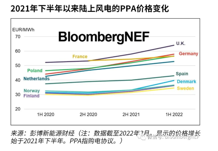 中國(guó)儲(chǔ)能網(wǎng)訊:歐洲各國(guó)無(wú)一例外地受到該地區(qū)能源危機(jī)的影響。2021年下半年至2022年上半年期間,所有市場(chǎng)的企業(yè)購(gòu)電協(xié)議(PPA)價(jià)格均出現(xiàn)上漲。