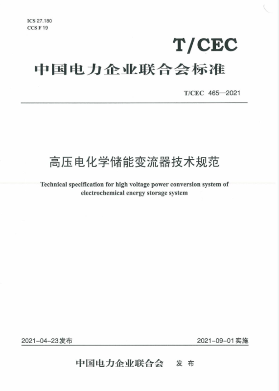 中國儲(chǔ)能網(wǎng)訊:廣州智光電氣股份有限公司(以下簡稱“智光電氣”)控股子公司廣州智光儲(chǔ)能科技有限公司(以下簡稱“智光儲(chǔ)能”)牽頭起草T/CEC 465-2021《高壓電化學(xué)儲(chǔ)能變流器技術(shù)規(guī)范》,規(guī)定了高壓電化學(xué)儲(chǔ)能變流器的分類、環(huán)境條件、安全、功能要求、性能指標(biāo)、標(biāo)識(shí)與文檔、包裝、運(yùn)輸、儲(chǔ)運(yùn)、檢驗(yàn)等要求,適用于無需集成升壓變壓器、交流側(cè)輸出電壓等級6kV至35kV的高壓電化學(xué)儲(chǔ)能變流器。