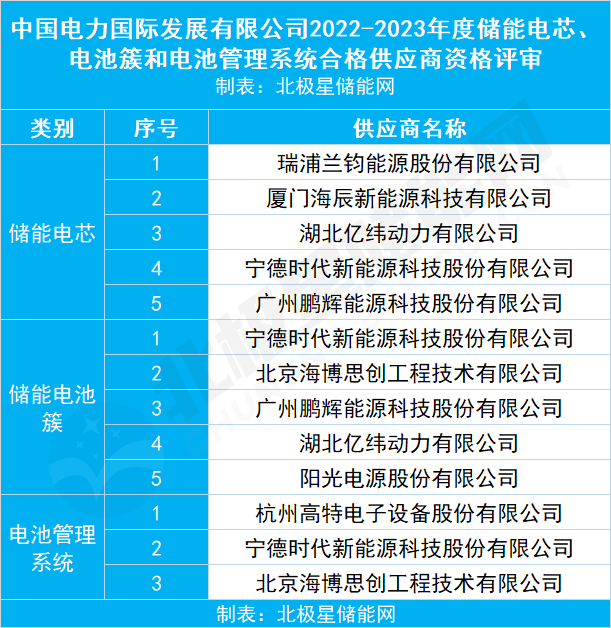 據(jù)此前公告顯示,此次評(píng)審內(nèi)容包括:對(duì)2022-2023年度中國電力儲(chǔ)能電芯、電池簇和電池管理系統(tǒng)合格供應(yīng)商的評(píng)審;以及對(duì)國家電投中國電力所屬新源智儲(chǔ)能源發(fā)展(北京)有限公司生產(chǎn)用儲(chǔ)能電芯、電池簇和電池管理系統(tǒng)的供貨和技術(shù)服務(wù)供應(yīng)商資格評(píng)價(jià)審查。
