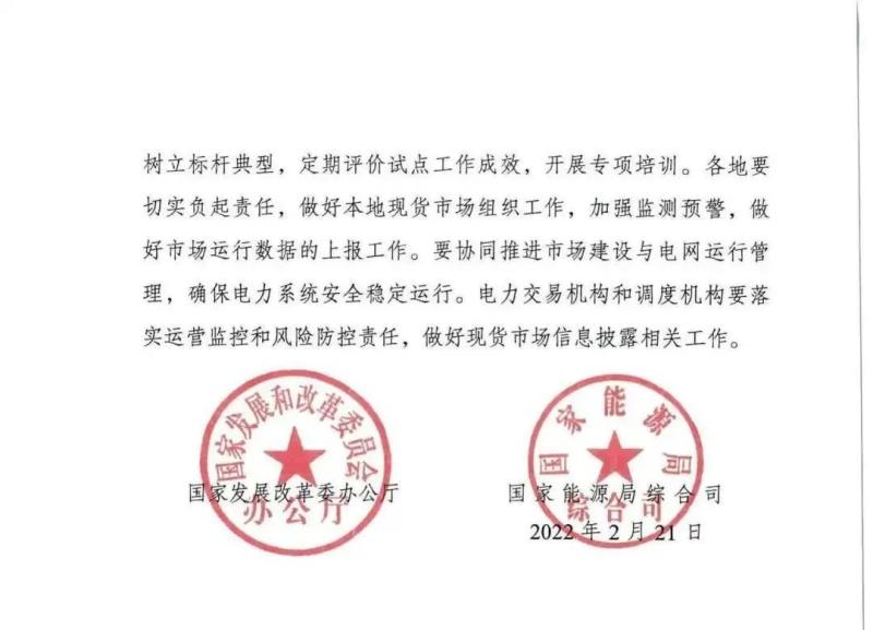 支持具備條件的現(xiàn)貨試點(diǎn)不間斷運(yùn)行,盡快形成長(zhǎng)期穩(wěn)定運(yùn)行的現(xiàn)貨市場(chǎng)。第一批試點(diǎn)地區(qū)(廣東、蒙西、浙江、山西、山東、福建、四川、甘肅)原則上2022年開展現(xiàn)貨市場(chǎng)長(zhǎng)周期連續(xù)試運(yùn)行,第二批試點(diǎn)地區(qū)(上海、江蘇、安徽、遼寧、河南、湖北)原則上在2022年6月底前啟動(dòng)現(xiàn)貨市場(chǎng)試運(yùn)行。其他地區(qū)盡快開展現(xiàn)貨市場(chǎng)建設(shè)工作。2022年6月底,省間現(xiàn)貨交易啟動(dòng)試運(yùn)行。