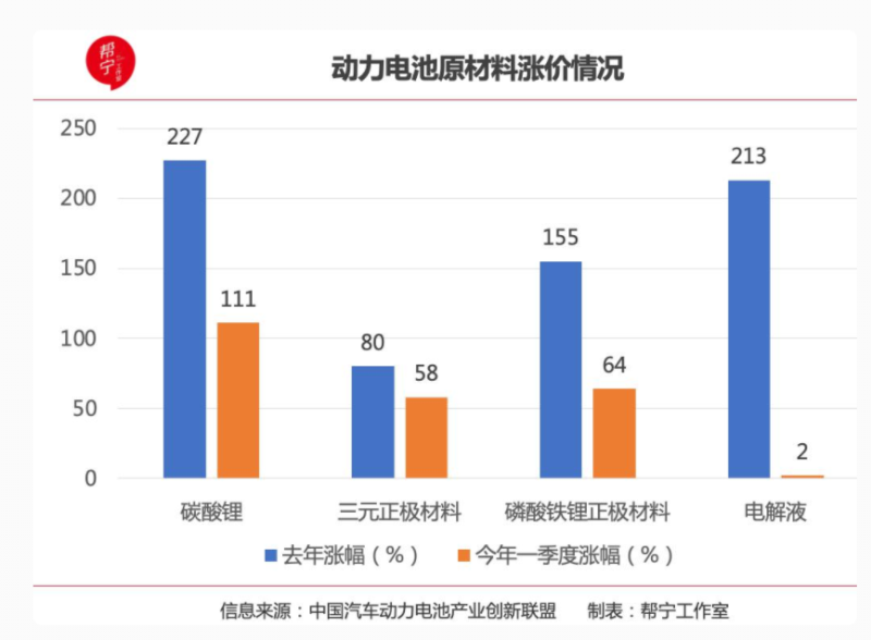 面臨原材料價格高企困境的,不止是寧德時代。