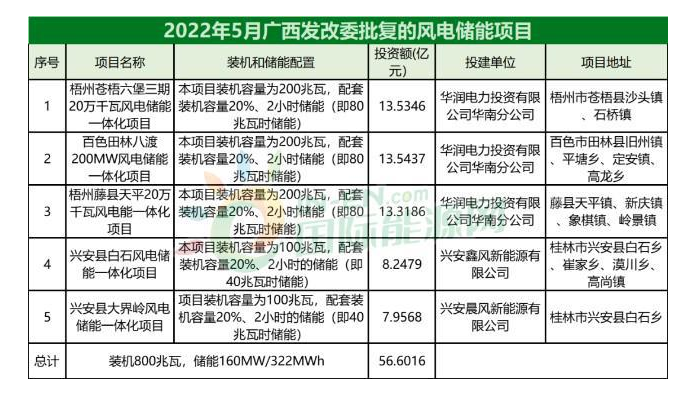 5月剛過數(shù)日,廣西又集中核準(zhǔn)批復(fù)一批風(fēng)電儲能一體化項目,華潤電力強勢參與: