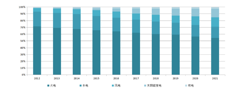 2012~2021年全國電力裝機結(jié)構(gòu)