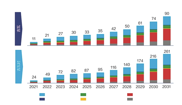 2021—2031年全球各地區(qū)儲能年度發(fā)展情況