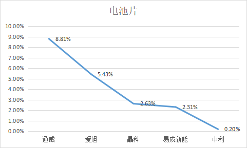 第三,在主產(chǎn)業(yè)鏈上,電池與組件的盈利代表了2021年供應(yīng)鏈廝殺下的行業(yè)現(xiàn)狀。電池環(huán)節(jié),通威、愛旭兩大龍頭企業(yè)電池片毛利均不及10%,較2020年毛利率下降近50%,其余涉及電池片業(yè)務(wù)的企業(yè)毛利率更是不及5%,均出現(xiàn)了不同程度的虧損,例如易成新能、中利集團(tuán)等,毛利率最低僅為0.2%。