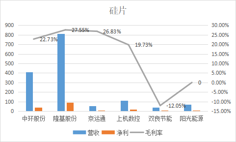 其次,硅片企業(yè)盈利水平也較高,約5家硅片企業(yè)總盈利達(dá)到了近160億元,占比總凈利近20%,但隆基、中環(huán)則占據(jù)硅片環(huán)節(jié)總盈利的80%以上,分化較為嚴(yán)重。從毛利率來看,隆基股份最高達(dá)到了27.55%,中環(huán)、京運(yùn)通稍次之,但總體保持在了20%以上。