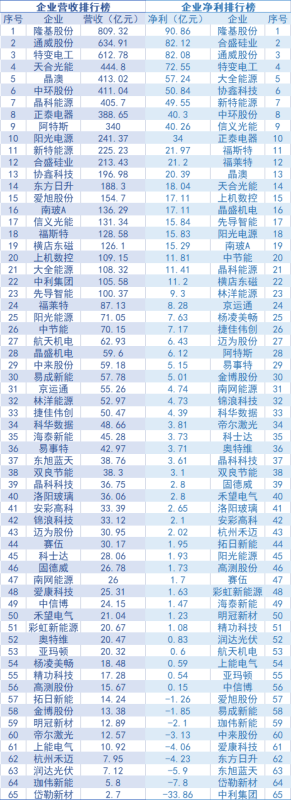 營收&凈利榜:硅料及一體化企業(yè)領(lǐng)銜