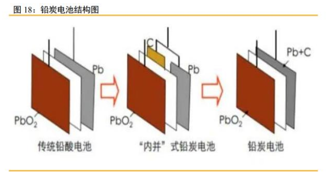 鉛碳電池是一種電容型鉛酸電池,是從傳統(tǒng)的鉛酸電池演進出來的技術。普通鉛酸 電池的正極活性材料是氧化鉛(PbO2),負極活性材料是鉛(Pb),若把負極活性材料Pb全部 換成活性炭,則普通鉛酸電池變成混合電容器;若把活性炭混合到負極活性材料Pb中, 則普通鉛酸電池變成鉛炭電池。