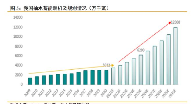 《關于進一步完善抽水蓄能價格形成機制的意見》厘定了抽水蓄能電站的價格機制, 使得抽蓄電站具備了商業(yè)化條件;《關于加快推動新型儲能發(fā)展的指導意見》提出到2025 年,新型儲能裝機規(guī)模達3000萬千瓦以上。健全“新能源+儲能”項目激勵機制。 2021 年8月9日,發(fā)改委出臺《關于鼓勵可再生能源發(fā)電企業(yè)自建或購買調峰能力增加并網規(guī) 模的通知》明確了風光發(fā)電保障性規(guī)模和市場化規(guī)模配儲的要求。