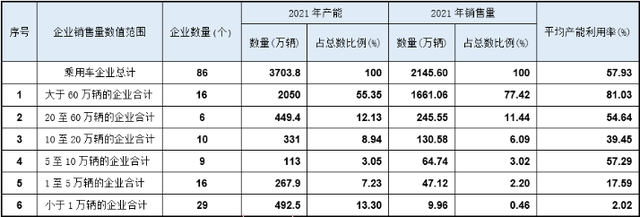 2021年乘用車產能按企業(yè)銷售量的分析(圖片來源:乘聯(lián)會)