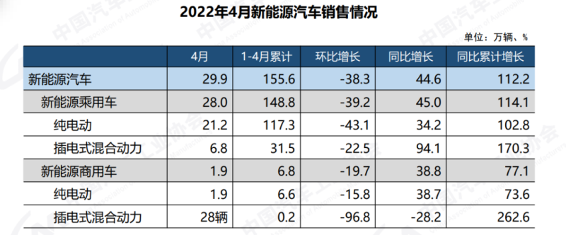 具體來看,今年前4個月,純電動汽車產(chǎn)銷分別完成127.8萬輛和123.9萬輛,同比均增長1倍;插電式混合動力汽車產(chǎn)銷分別完成32.6萬輛和31.6萬輛,同比分別增長1.9倍和1.7倍;燃料電池汽車產(chǎn)銷分別完成1034輛和832輛,同比分別增長6.4倍和3.4倍。