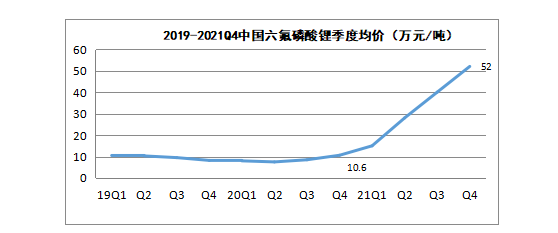 2022年開年,新能源汽車市場保持景氣旺盛態(tài)勢,六氟磷酸鋰的現(xiàn)貨報價持續(xù)走高,并向上飆漲至60萬/噸(有價無市)。