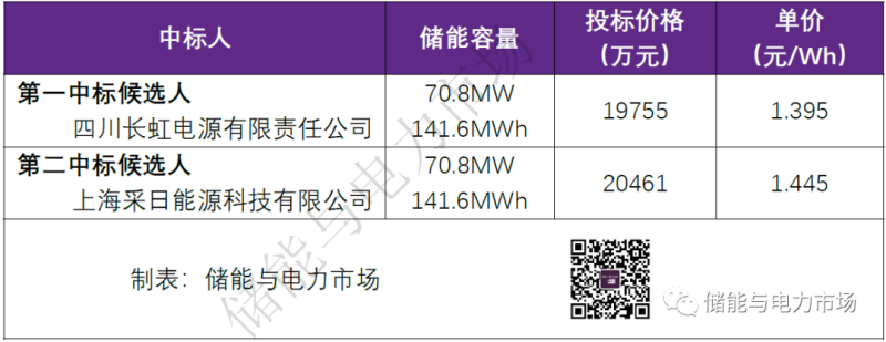 中國儲(chǔ)能網(wǎng)訊:5月13日,華潤電力隨縣文昌化學(xué)儲(chǔ)能電站工程一期項(xiàng)目發(fā)布儲(chǔ)能系統(tǒng)設(shè)備中標(biāo)公告,四川長虹電源有限責(zé)任公司以19755萬元成為第一中標(biāo)候選人,該項(xiàng)目儲(chǔ)能容量70.8MW/141.6MWh,折合單價(jià)1.395元/Wh,中標(biāo)結(jié)果如下: