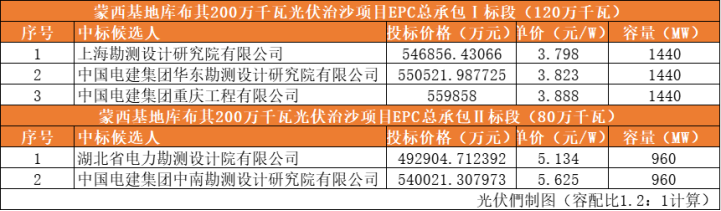 此次根據(jù)中標(biāo)公示,I標(biāo)段預(yù)中標(biāo)人為上??睖y設(shè)計研究院有限公司,投標(biāo)報價為546856.430664萬元,單價3.798元/W。Ⅱ標(biāo)段預(yù)中標(biāo)人為湖北省電力勘測設(shè)計院有限公司,單價5.134元/W。值得注意的是,此次項目中最高報價為5.625元/W。