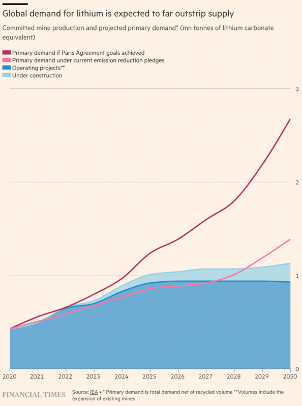 國際能源署表示,全球80%以上的鋰礦產(chǎn)自澳大利亞、智利和中國,僅中國就控制著全球一半以上的加工和精煉。美國在內(nèi)華達(dá)州有一座露天鋰礦,其他大部分供應(yīng)來自阿根廷和智利。