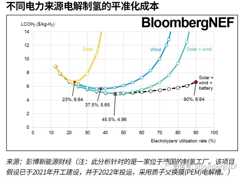 彭博新能源財經(jīng)的模型可以評估一系列廣泛的項目設(shè)計,但通常會得出兩個結(jié)論。首先,與單獨(dú)依賴一種能源相比,結(jié)合風(fēng)光提供的解決方案更便宜。其次,對于需要穩(wěn)定綠氫供應(yīng)的應(yīng)用而言,增加電池可以提高經(jīng)濟(jì)性。